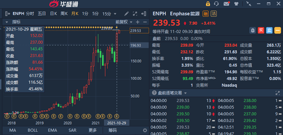 Enphase能源 $ENPH 是太阳能行业的领导者,今年股价飞涨。仅在10月份就飙升了近55%,在10月标普500涨幅榜上位居榜首。它的市值为292亿美元,仅相当于特斯拉的3%。但就10月份而言,其股价涨幅超过了特斯拉 $TSLA 44%的涨幅。这也不是Enphase第一次出现月度大幅增长。6月份,该公司股价也飙升了28%以上。
