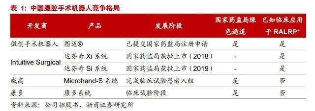 除图迈外,中国仅有两款腔镜手术机器人处于临床试验阶段,分别为威高的Microhand-S和康多的康多系统。