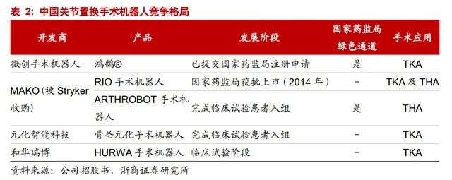 MAKO Surgical Corporation开发的RIO手术机器人为唯一NMPA获批产品。将是鸿鹄的主要对手。