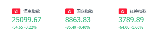 周二港股恒生指数收跌0.22%,报25099.67点,录得6连跌;恒生科技指数涨0.56%,早盘一度涨超4%;恒生国企指数跌0.4%;大市成交1460.1亿港元。