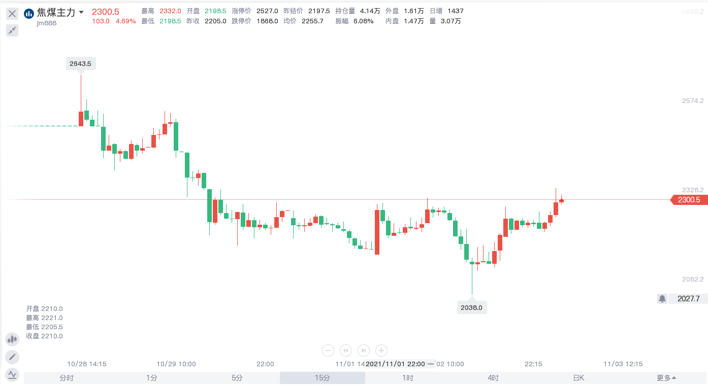 北京时间周三上午,动力煤主力合约一度涨超4%,结束连续11个交易日下跌。焦煤主力合约涨约5%,焦炭主力合约涨约3%。