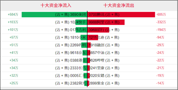 淡仓(认沽证及熊证)方面,周二美团、快手相关淡仓单日分别录得约584万、103万港元资金净流入;相反,腾讯、阿里相关淡仓单日分别录得约605万港元、332万港元资金净流出。