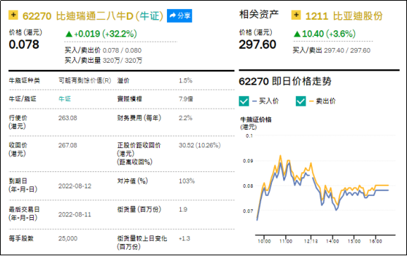 好仓(认购证及牛证)方面,周二腾讯、小米相关好仓单日分别录得约5557万、261万港元资金净流入;相反,美团、比迪相关好仓单日分别录得811万、629万港元资金净流出。