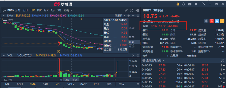 华盛资讯11月3日讯,美股盘前,WSB概念股盘前集体异动,3B家居(BBBY.O)大涨60%,当纳利(RRD.O)涨47%,Express(EXPR.O)涨7.5%,高斯电子(KOSS.O)、AMC院线(AMC.N)涨超5%