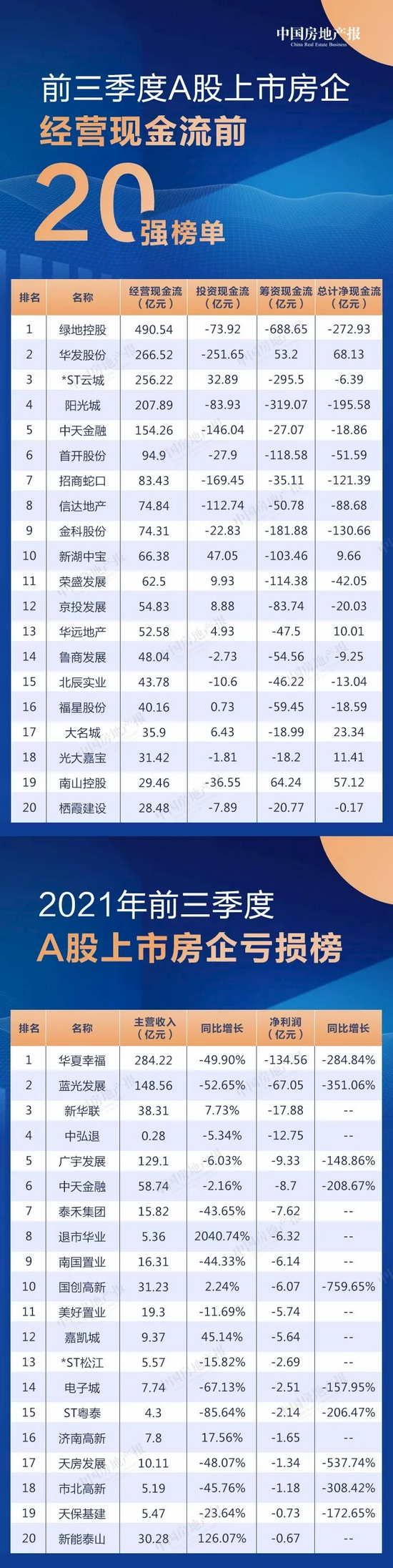 在A股121家上市房企中,有31家房企前三季度陷入亏损,亏损最多的3家房企分别是华夏幸福、蓝光发展、新华联。