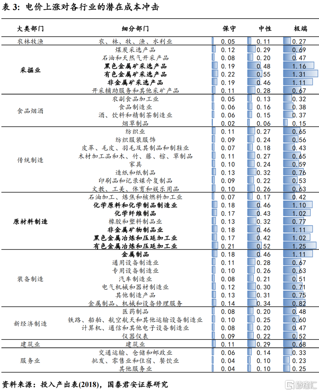 结合各行业的成本传导能力以及受到电价上涨的成本冲击,来判断电价对于利润分配格局的影响。我们重点讨论三种情况: