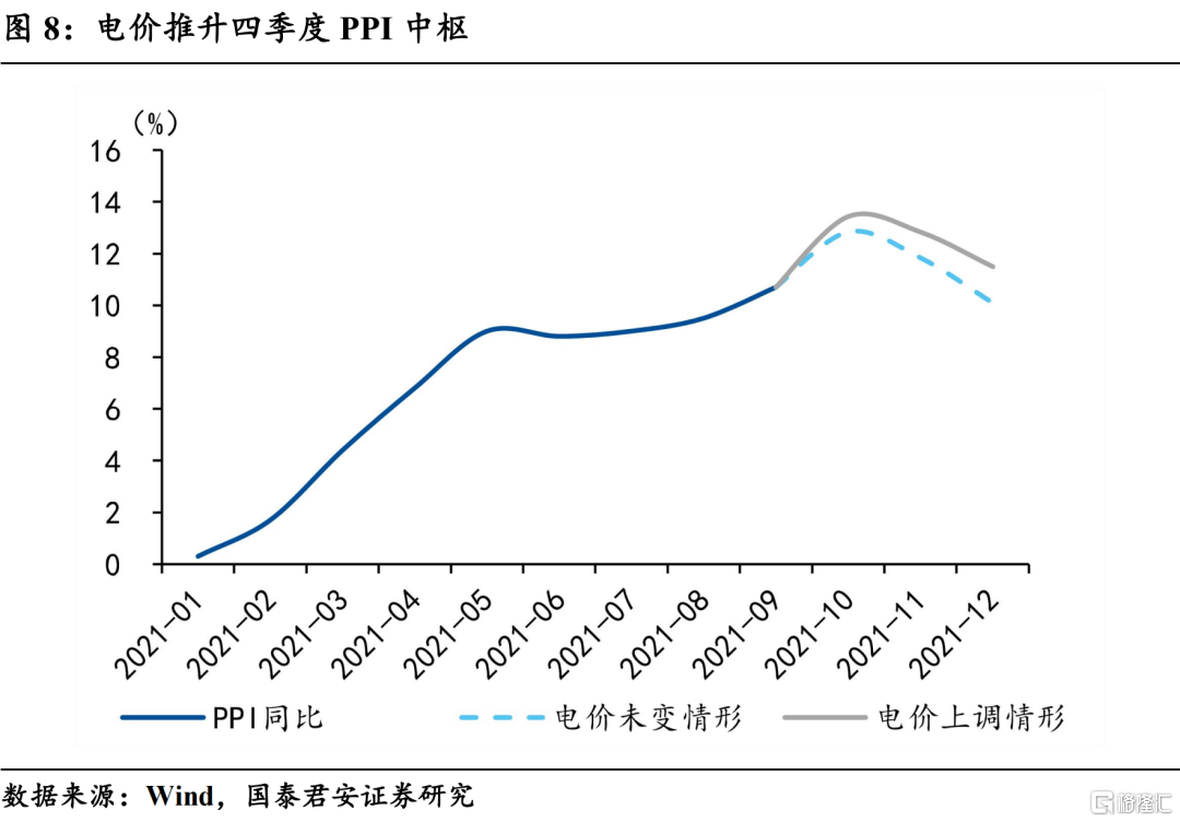电价上涨对于PPI的冲击最大,对CPI的影响较弱,四季度的PPI可能进一步冲高。