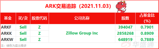 没想到本以为的抄底,抄在了半山腰。周三,Zillow 跌跌不休,继续延续前两日下跌趋势,这下木头姐也坐不住了,旗下三只基金ARKF、ARKK和ARKW同时抛售约390万股Zillow。
