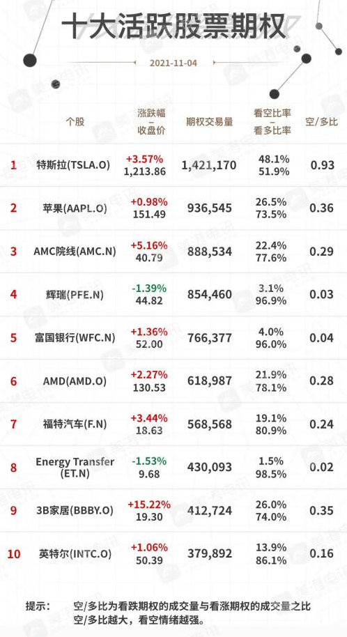 隔夜WSB概念股普涨,AMC院线 $AMC 、3B家居 $BBBY 期权交易量分别涨至88.85万张和41.27万张,空/多比分别为0.29和0.35。