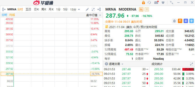 Moderna公布Q3营收49.69亿美元,去年同期为1.57亿美元;净利润33.33亿美元,去年同期录得净亏损2.33亿美元。公司第三季度新冠疫苗营收为48亿美元,销售了2.08亿剂疫苗,同时下调全年新冠疫苗交付量预测。
