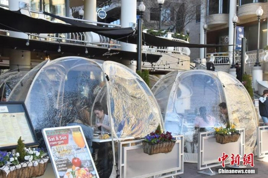 当地时间2020年12月29日,美国首都华盛顿民众在室外“泡泡”餐厅用餐。中新社记者 沙晗汀 摄