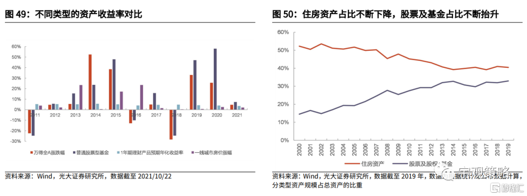 展望2022年,居民资金迁移等长期因素仍将支持资金流入股市。居民资金迁移是支持资金流入股市的核心因素之一。我国居民资产结构中,房地产占比仍然最高,而对比之下,金融资产的占比仍相对较低。根据2019年统计数据,居民资产结构中,股票及股权合计占比在29.6%左右,证券投资基金的占比则仅有3.3%左右。