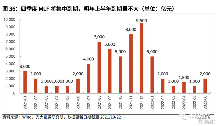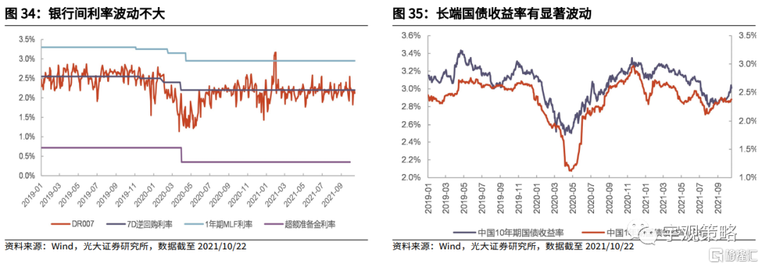 预计2022年将有望降息,降准时机则要更加灵活。今年四季度将有较大规模的MLF到期,而今年年末与明年年初更加积极的信贷投放可能也需要央行给予一定的支持,我们或许将看到央行在合适的时机降准。相较而言,降息的条件可能会更加严苛。但考虑到经济的下行压力,以及当前的收益率水平仍然接近2019年的水平,仍有下行空间,2022年我们仍有希望看到降息的出现。总体上,货币政策将相较2021年更加宽松。