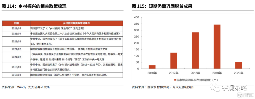 共同富裕指引之下,乡村振兴政策有望发力。疫情影响之下,乡村低收入人群无论是收入还是支出都面临着较大的压力,同时,730政治局会议再次强调要推进实施乡村振兴战略,以最终实现共同富裕。在明年国内经济存在一定压力的背景下,乡村振兴也将是明年稳增长的又一重要抓手。