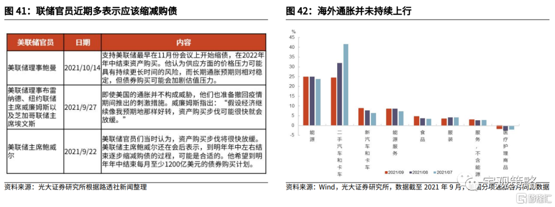 预计海外收紧对于国内的影响有限。虽然2022年海外货币政策将进入到收紧区间,但预计对国内的影响将相对有限。从政策角度来看,央行一直在强调国内货币政策的独立性,在没有明显压力的情况下,预计不会跟随海外节奏收紧。