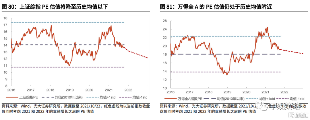 展望2022年,市场的波动将会有所收敛。盈利增长将显著下行,流动性的边际宽松和政策的落地对于市场会形成一定支持,但恐怕难以对冲盈利下行的影响。2015年之后,市场中缺乏盈利支持的牛市已经较为罕见,预计2022年指数将震荡偏弱。节奏上市场可能会跟随政策波动,预计将前高后低。考虑到政策可能会出现前置,四季度以及明年春节前后的市场躁动仍值得把握。