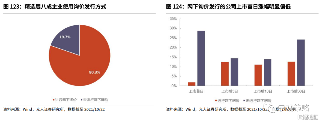 更加灵活的定价机制有利于企业充分融资。折价发行在我国市场中较为常见,定价机制仍有较大的市场化改革空间。一方面,折价发行带来国内新股上市首日回报明显,另一方面,很多公司实际募资额低于计划募资额。相比较而言,新三板的定价可能更加充分,网下询价发行的公司上市首日涨幅平均仅为1.8%,明显低于未使用网下询价发行方式的公司。未来北交所定价方式可能会更加灵活,有利于中小企业充分融资,也将吸引更多的中小企业前来上市。