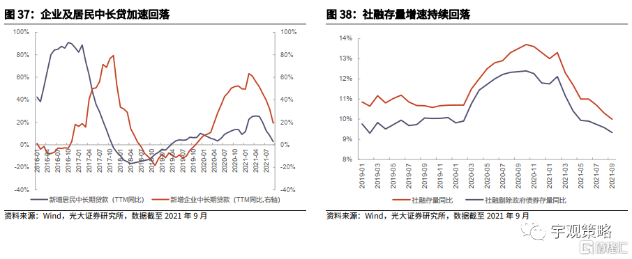 预计这一情况明年将出现改变,随着整体政策的逐步发力,2022年货币政策预计也将进入到宽松区间,并且将带动利率水平小幅下行。同时信用紧缩预计也将告一段落,社融增速预计也将逐步企稳回升。海外流动性虽然会有边际收紧,但对于国内的影响相对有限。