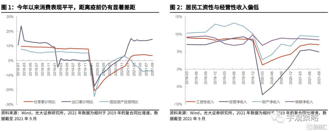 2021年政策整体保持了较强的定力。由于今年经济增速依然保持了较高的水平,因此政策在今年选择了保持定力,以留好余力做跨期调节。随着基数效应以及疫情影响的过去,国内经济压力将逐步显现,预计明年稳增长政策将会全面展开,在基建、消费甚至房地产领域都会出现显著的变化。
