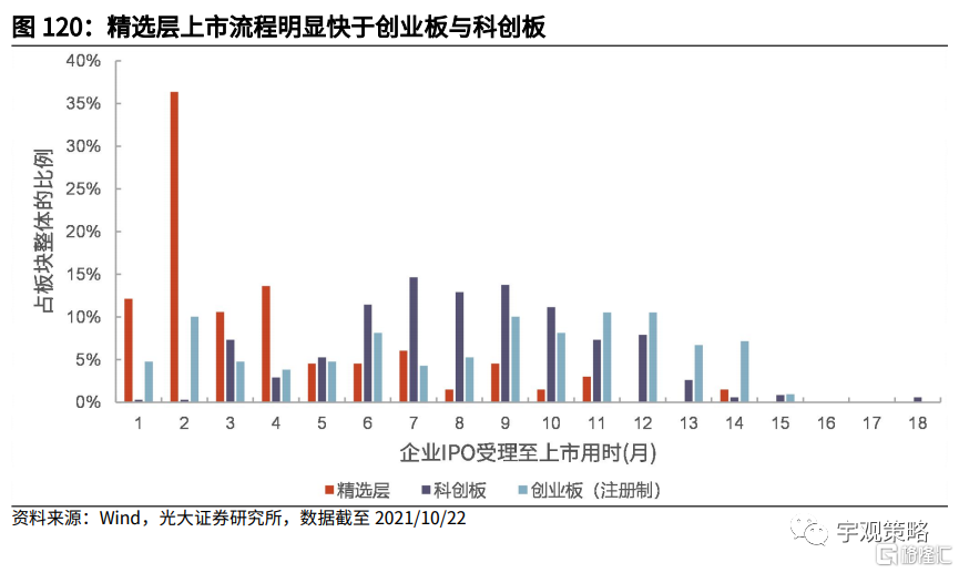 新三板挂牌审批时间较短,IPO受理到首发上市时间一般为2-4个月。由于北交所总体平移精选层的各项基础制度,因此在北交所上市的政策与新三板的精选层一致。审批时间短、挂牌程序便捷是新三板市场的优势。具体来看,企业在精选层从申请IPO受理到首发上市之间用时基本在2到4个月的时间,而科创板则需要6-12个月,创业板需要9-14个月。相对较快的审批流程将有望助推北交所市场成为中小企业上市的首选路径。