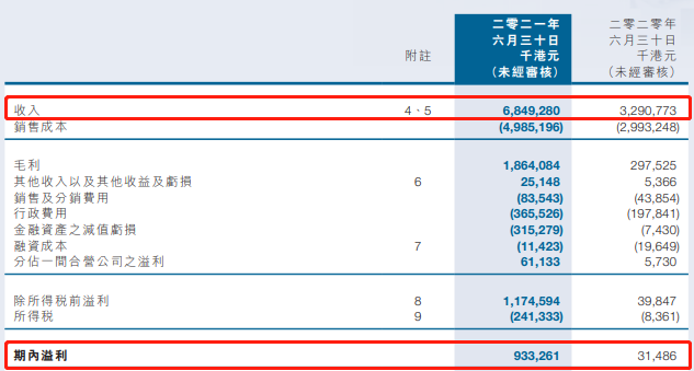 得益于强劲的需求,公司在2021年上半年营收达到了68.5亿港元,同比大增108.1%;主要就是源于图像显卡的销售额同比增加了34.8亿港元,增幅达到140.8%。上半年,公司实现净利润9.33亿港元,同比狂增2800%。