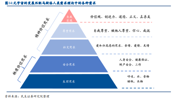 第四,元宇宙的发展匹配马斯洛人类需求理论中的各种需求。