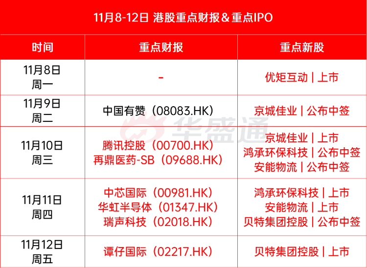 四、下周财报、新股预告及重要经济数据(11.8-11.12)