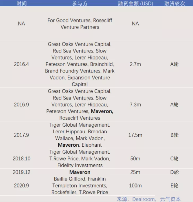 Dealroom.com的公开资料显示,Maveron深度参与了Allbirds的A轮、B轮融资,并独家投资了其D轮。