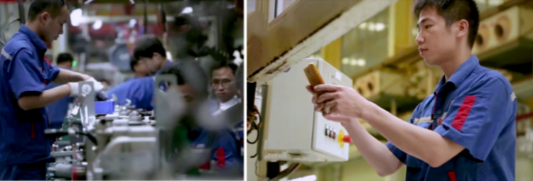 以前在玉柴的保修,整个的过程下来需要8个小时。后来,通过小小的企业微信二维码,这个时间大大缩短了——在玉柴的工厂里,每个机器人都有一张企业微信二维码。当机器不运行的时候,生产工人们可以用手机扫码,而维修工人即可立马收到维修申请单。同时,他们上线了智能抢单系统,维修工人可以实时抢单,充分调动积极性,整个数据系统上线之后,玉柴积累了非常多的维修数据,这些数据再与AI结合,则可更快地判定维修状态,获得智能辅助。