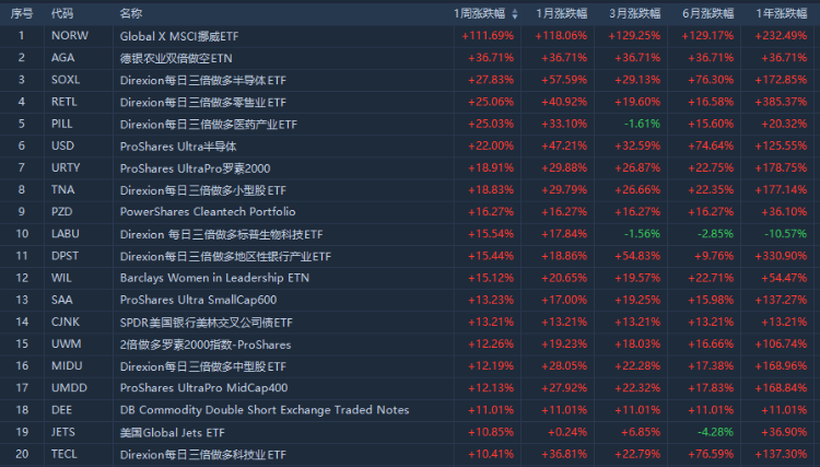 1、本周美股ETF涨幅榜