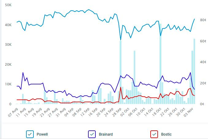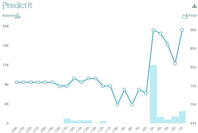 值得一提的是,在上述知情人士爆料公布后,政治博彩网站PredictIt.org上鲍威尔获得连任的概率预期,在北京时间上周五早间迅速飙升: