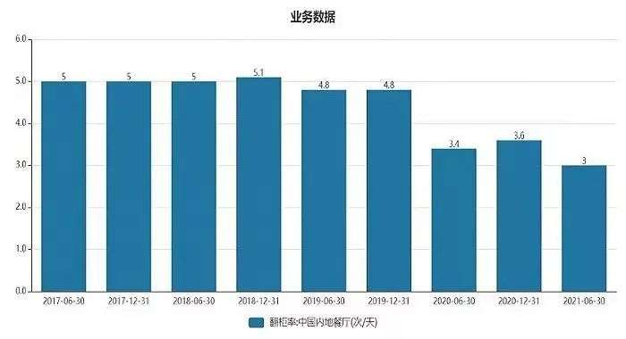 但今年上半年整体翻台率只有3.0次,2019年和2020年同期分别为4.8次和3.3次。