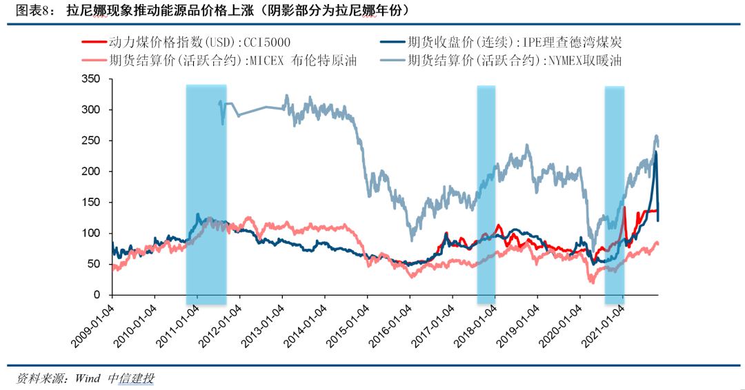 (一)拉尼娜现象对原油、取暖油、煤炭等能源品有明显影响