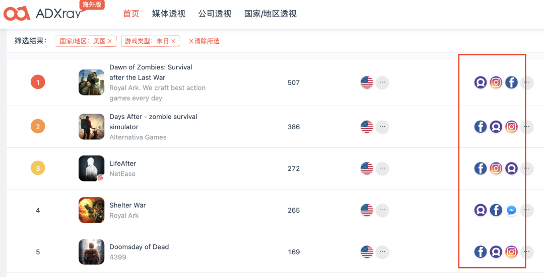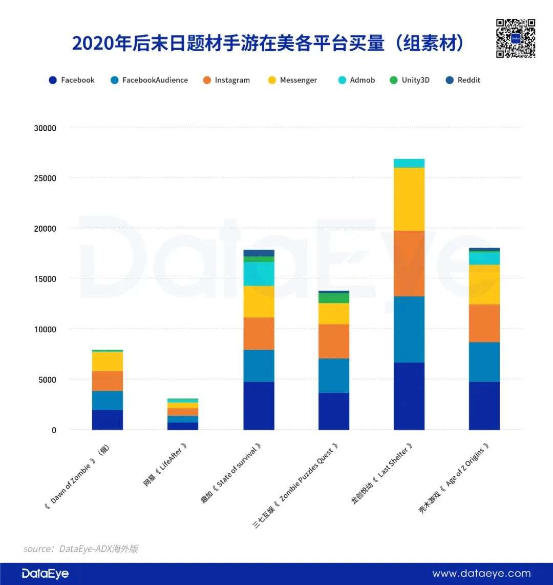 末日题材手游在美买量平台分布,数据整理自DataEye-ADX海外版