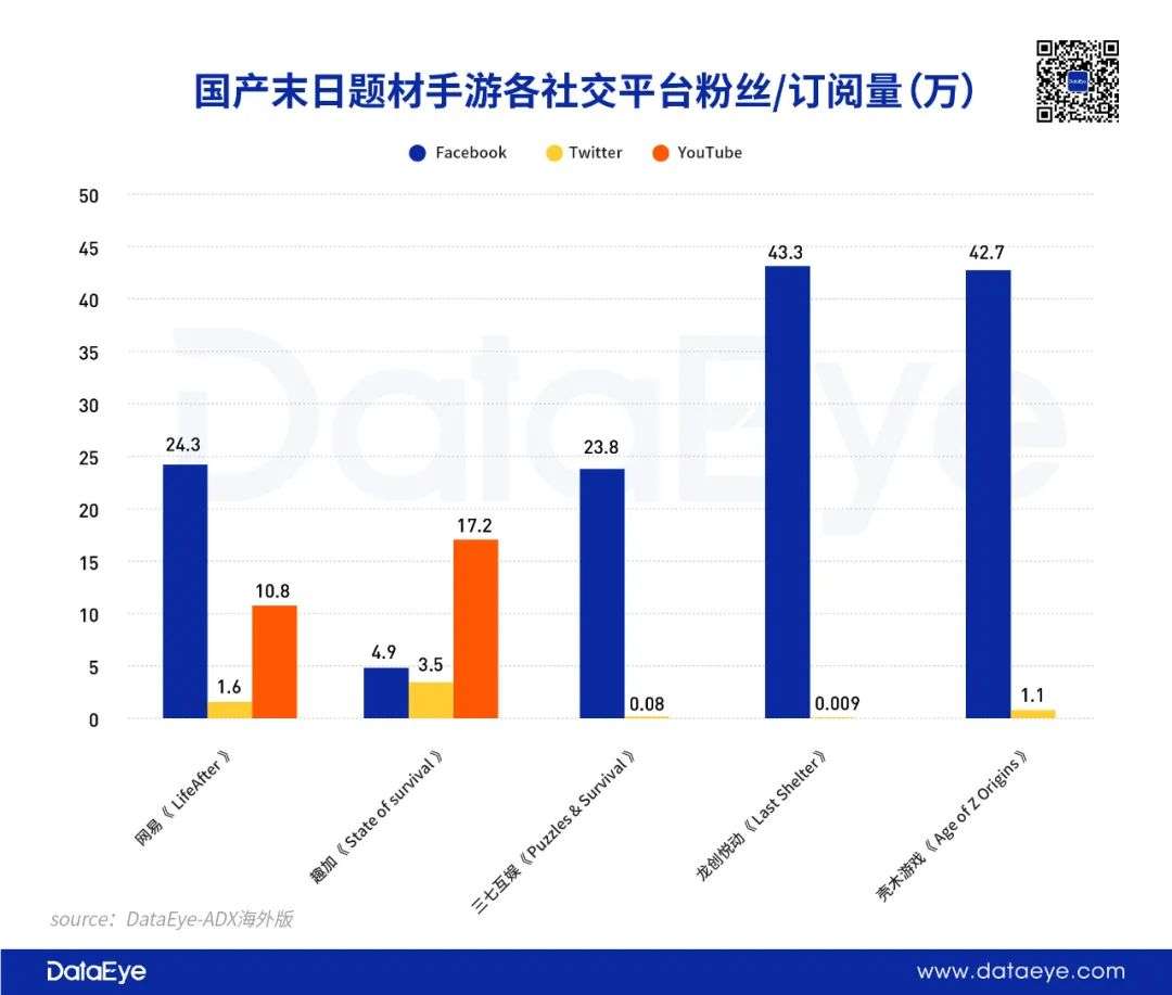 国产末日题材手游在各社交/视频平台粉丝订阅(部分手游未开通账号)