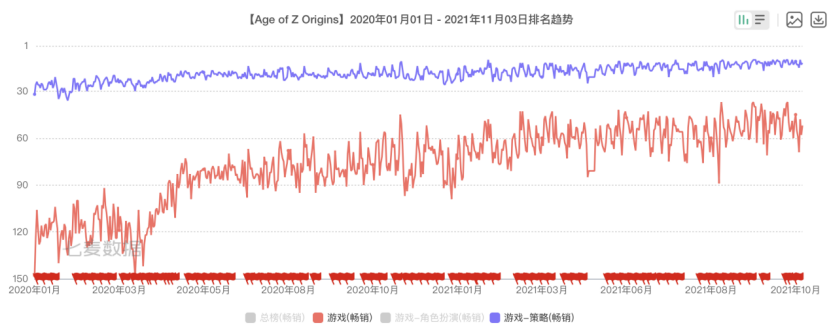 《Age of Z Origins》在“游戏-策略(畅销)”榜排名稳定,在“游戏(畅销)”总榜排名上升