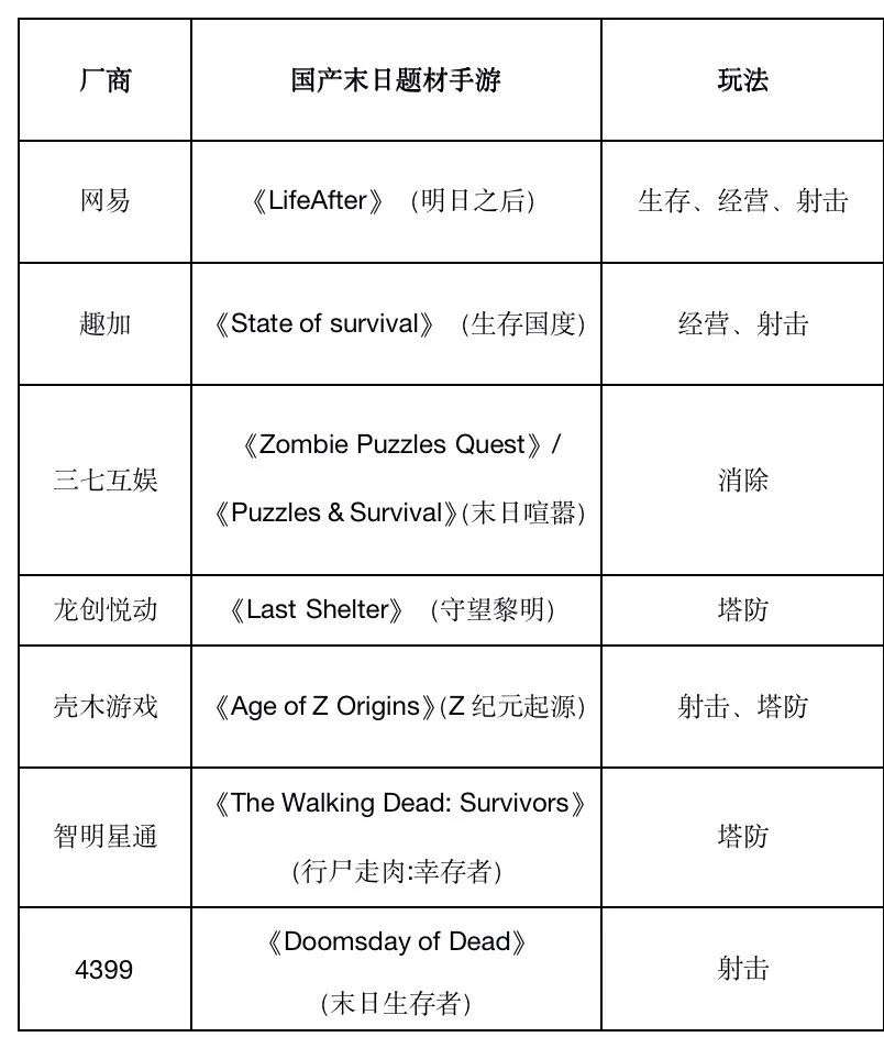 目前,在美国,具有代表性的国产末日题材手游包括: