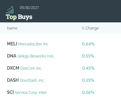 从持仓比例变化来看,前五大买入标的分别是:MercadoLibre $MELI 、Ginkgo Bioworks $DNA 、德康医疗 $DXCM 、Doordash $DASH 、Service Corp International $SCI 。