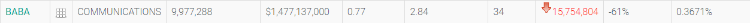 此外,Baillie Gifford于三季度减持阿里巴巴 $BABA 约1575万股,持股数环比下降达61%。但其仍位列阿里的前十大股东。