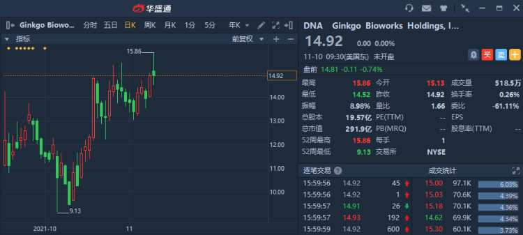 其中,今年上市的基因编程公司Ginkgo Bioworks年内涨幅为30.65%。该公司在上市过程中,曾通过私募股权融资筹得7.75亿美元资金,除Baillie Gifford外,摩根士丹利、木头姐的ARK、比尔·盖茨的投资实体Cascade等投资机构都有参与。