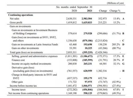 综合过去半年,软银集团的营收增长了13.4%,净利润增长15.2%。具体来看,软银集团的投资收益下降了51.7%,两只愿景基金出现了8791亿日元(约495亿人民币)的亏损,拉丁美洲的投资收益增长了205%。