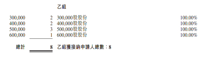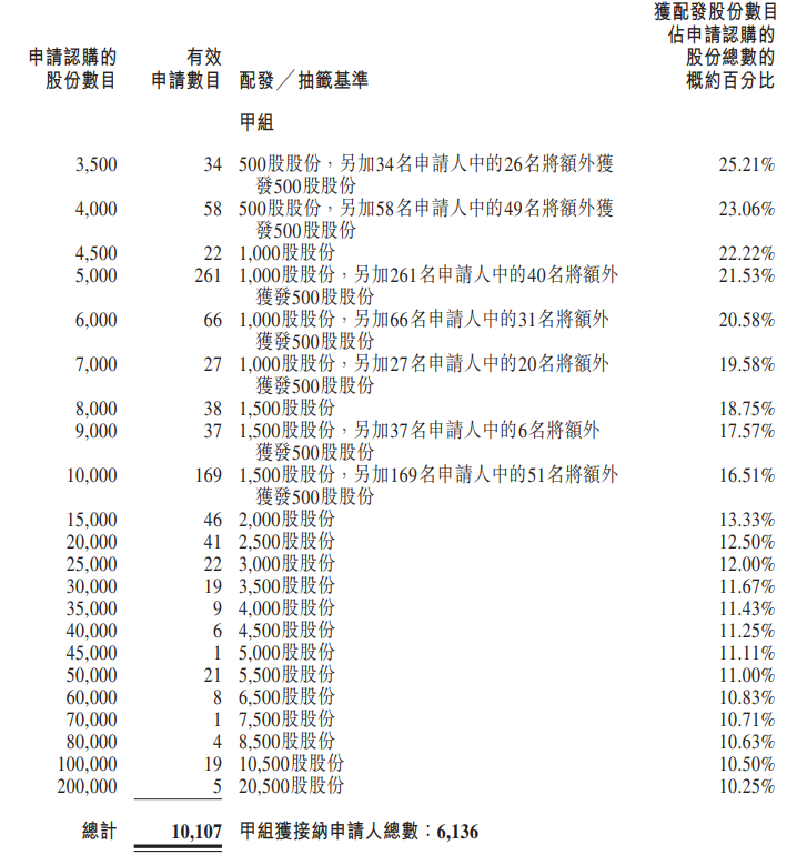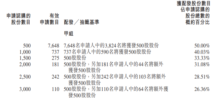 其中,香港发售股份已获适度超额认购,超购1.8倍。分配予香港公开发售的发售股份最终数目为802.2万股股份,相当于全球发售项下初步可供认购发售股份总数的10%,并已根据香港公开发售分配予6144名获接纳申请人。合共5028名申请人已获配发一手发售股份。