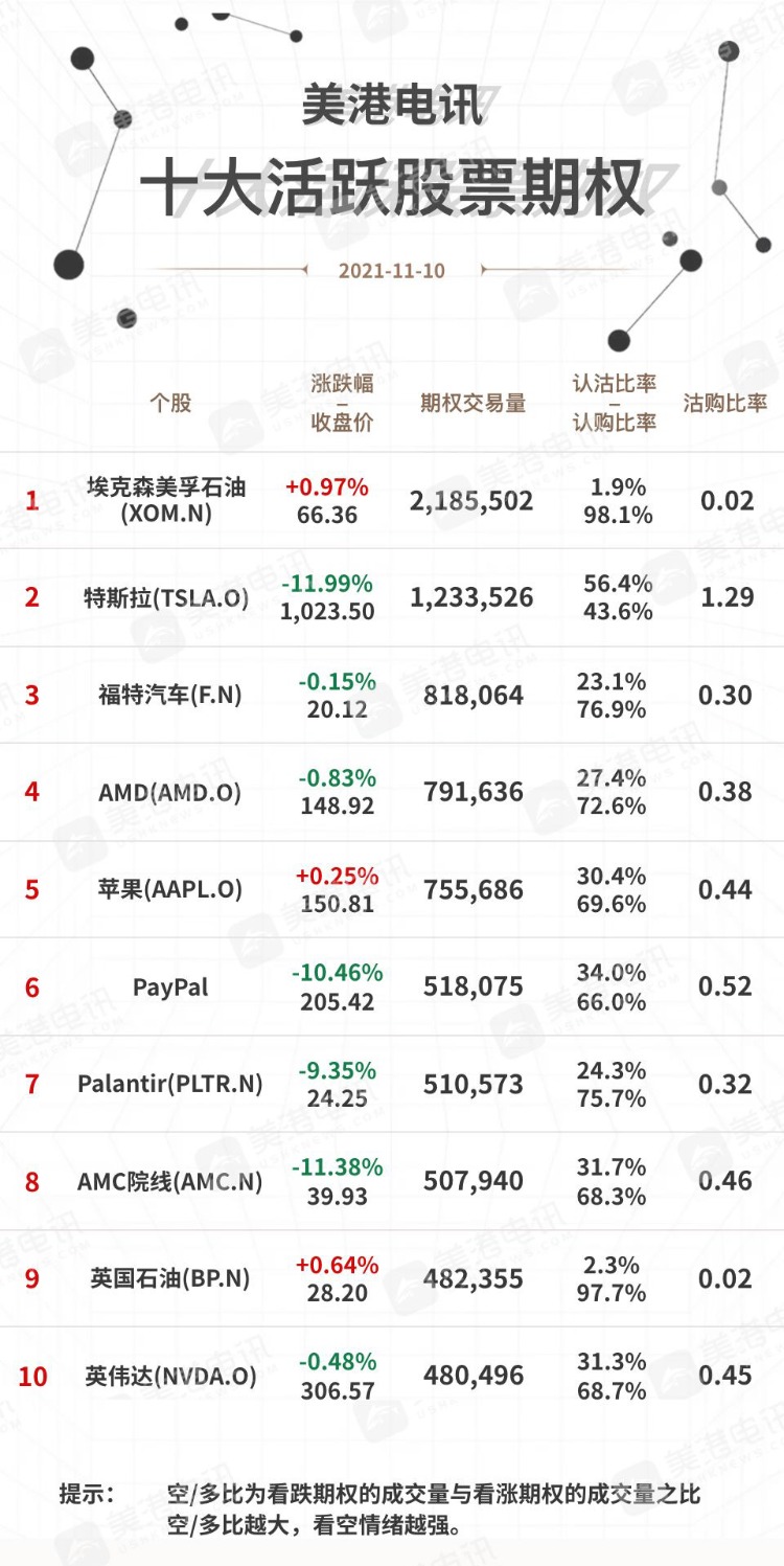 隔夜美股,埃克森美孚石油(XOM)期权交易量激增至218.6万张,位列第一;特斯拉(TSLA)期权交易量从上一交易日的70万张飙升至123.4万张。