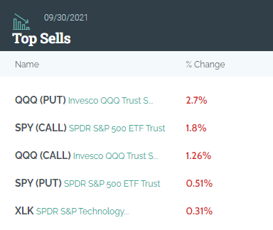 前五大卖出标的分别是:纳斯达克100 ETF $QQQ 看跌期权、标普500指数ETF $SPY 看涨期权、纳斯达克100 ETF $QQQ 看涨期权、标普500指数ETF $SPY 看跌期权、科技精选行业SPDR基金 $XLK 。