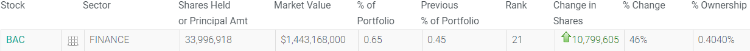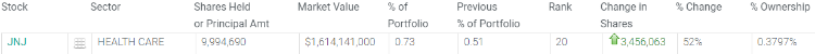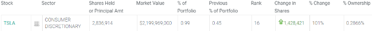 此外,巴克莱还增持了101%的特斯拉 $TSLA 、52%的强生 $JNJ 和46%的美国银行 $BAC