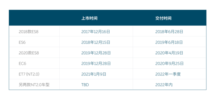 同时,蔚来也透露,明年会有包括ET7在内的三款NT2.0平台上市,产品阵容翻倍,达到6款。