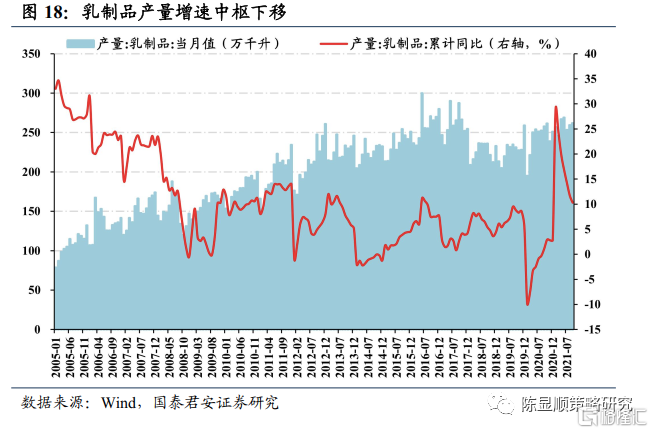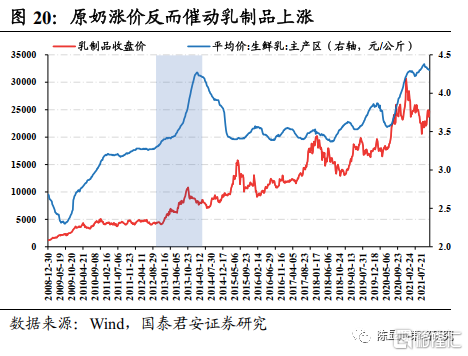 乳制品行业在三聚氰胺事件发生后,行业集中度得到了迅速提升,头部乳企份额集中到了伊利、蒙牛、光明等企业,且盈利的稳定性得到了迅速抬升。从乳制品的产量来看,自2007年后增速中枢整体下降,持续维持个位数。但在此期间,原奶价格在2012-2013年以及2020-2021年出现大幅上涨的时间段当中,头部乳制品企业的盈利能力和毛利率均维持稳定。对应行情来看,我们发现几轮乳制品的取得超额收益的行情当中均反而对应原奶价格明显上涨的时间段。