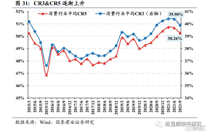 3.3. 线索三:从二级行业CR3/CR5的角度来看,近年来消费行业整体呈现出攀升的趋势。