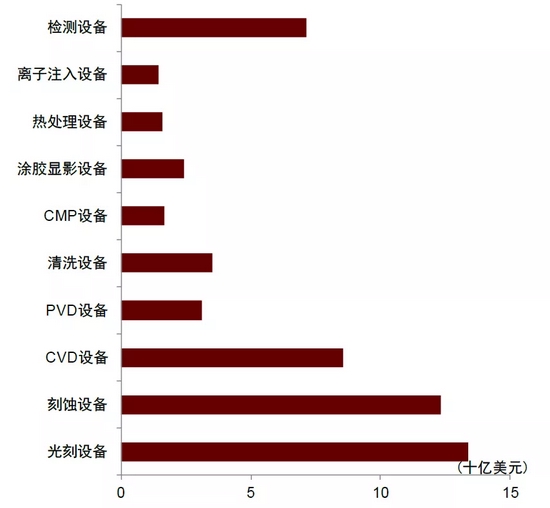 图表:全球各细分半导体前道设备市场规模(2020A)