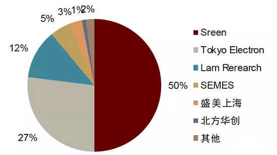 根据Gartner数据,2020年全球清洗设备市场规模35亿美元。全球清洗设备前三家Screen、Tokyo Electron和Lam Research占比接近90%,马太效应显著,行业高度集中。其中Screen占比近50%,处于决定领先地位。国内企业中,盛美上海是国产清洗设备的龙头厂商,主流产品客户包括中芯国际、长江存储、SK Hynix等。
